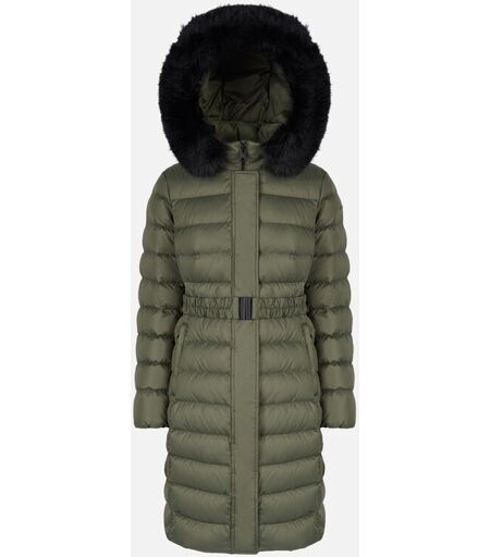 Doudoune longue pour femme au design élégant, dotée d'une ceinture qui met en valeur la silhouette et d'une fourrure amovible de couleur contrastée sur le col. Doudoune longue pour femme au design élégant, dotée d'une ceinture qui met en valeur la silhouette et d'une fourrure amovible de couleur contrastée sur le col. Proposé ici en vert olive, ce modèle est réalisé en tissu de polyester ultraléger, avec un rembourrage XDOWN chaud en plumes régénérées qui protège du vent et de la pluie. Garantis ...