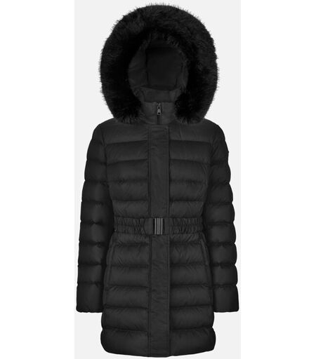 Doudoune longue pour femme aux lignes enveloppantes avec ceinture qui met en valeur le tour de taille et offre une élégante silhouette féminine. Doudoune longue pour femme aux lignes enveloppantes avec ceinture qui met en valeur le tour de taille et offre une élégante silhouette féminine. Proposé ici dans une version noire, le modèle Catria est réalisé en polyester recyclé déperlant et coupe-vent, avec un rembourrage XDOWN et une fourrure amovible pour une polyvalence maximale. Confortable et re ...