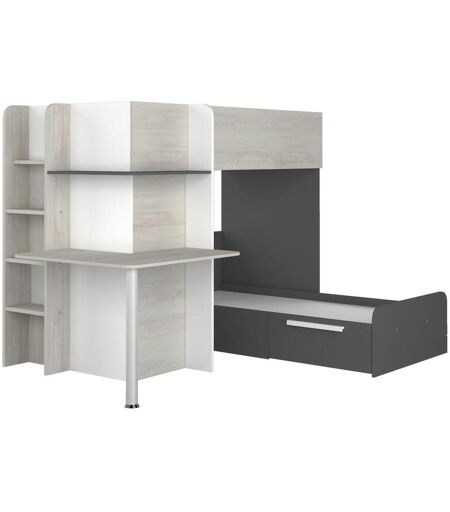 Vente-unique Lits superposés d'angle 2 x 90 x 190 cm - Avec bureau - Gris, blanc et noir - SAMUEL