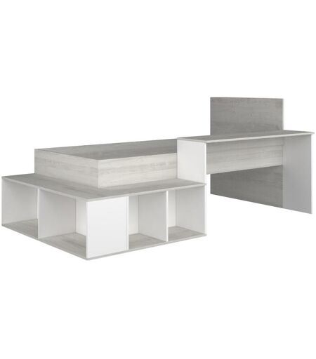 Lit combiné 90 x 200 cm avec rangements et bureau - Structure : Panneaux de particules - Coloris : Naturel grisé et blanc - Dimensions : L233,2 x P128,8 x H100,5 cm - Style : Contemporain - Le lit RIGALI, l'allié des chambres d'enfant ! ...