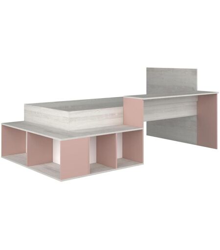 Vente-unique Lit combiné 90 x 200 cm avec rangements et bureau - Coloris : Naturel et Rose - RIGALI