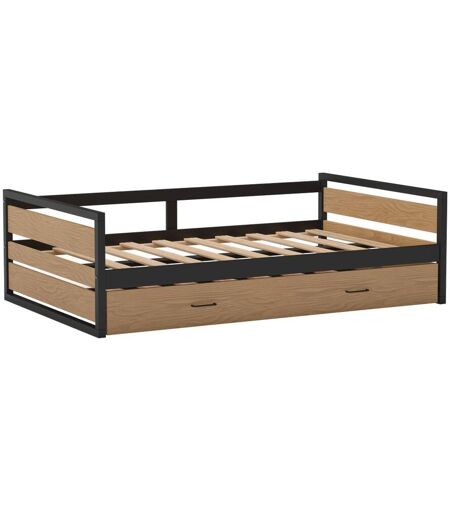 Lit gigogne industriel - 120x200 cm et 90x200 cm - Structure : MDF, Pin et métal - Coloris : Naturel clair et anthracite - Dimensions : L210 x P132,2 x H62 cm - Style : Industriel - Voyagez de l'autre côté de l'Atlantique avec le lit BOSTON ! ...