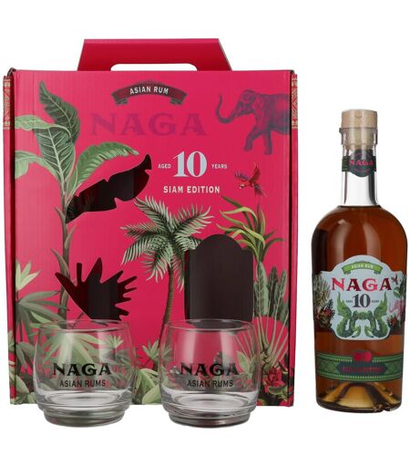 Naga Rum Naga 10 Years Old Asian Rum SIAM EDITION 40% Vol. 0,7l en boîte cadeau avec 2 Verres