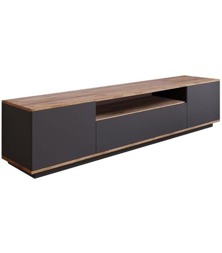 Vente-unique Meuble TV avec 3 portes et 1 niche - Anthracite et naturel - LOTULA