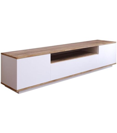 Vente-unique Meuble TV avec 3 portes et 1 niche - Blanc et naturel - LOTULA