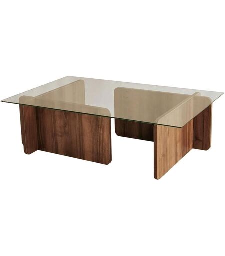 Table basse AZRA - Matières : Verre trempé et panneau de particules - Coloris : Naturel foncé et Transparent - Style : Design - Dimensions : L105 x P65 x H30 cm - AZRA : La table basse qui redonne vie à votre intérieur ! ...