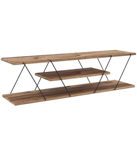 Meuble TV DELORY avec 1 étagère - Matières : Panneau de particules et métal - Coloris : Naturel et noir - Style : Design - Dimensions : L120 x P30 x H33 cm - Choisissez un meuble original et soigné avec la collection DELORY ! ...