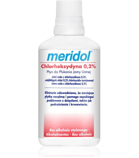 Meridol Chlorhexidine, 300 ml, Bains de bouche mixte, Le bain de bouche Meridol Chlorhexidine ne vous aide pas uniquement à rafraichir votre haleine, il agit également contre la plaque dentaire et aide à maintenir une bonne hygiène de la gencive et des dents. Le produit : tue les bactéries protection contre la plaque dentaire assure une haleine fraîche supprime la mauvaise haleine de votre cavité buccale maintient des gencives saines renforce l’émail Mode d’emploi : Après le brossage des dents, rincez la bouche avec le bain de bouche pendant la durée indiquée sur l’emballage, rincez ensuite. ...
