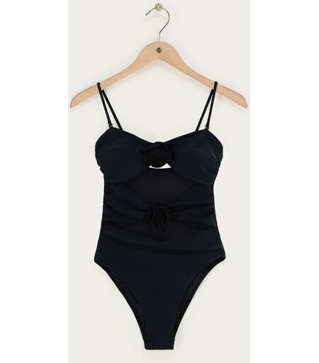 Maillot de bain noir avec découpes et fleurs 3D My Jewellery Noir L fehomme