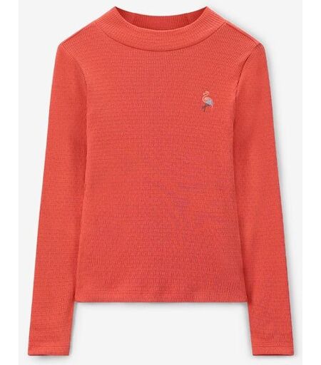T-shirt rouge clair de Sissy-Boy. Le t-shirt en tissu côtelé a des manches longues, un col montant et un flamant rose sur la poitrine. Composition : 100% coton. ...