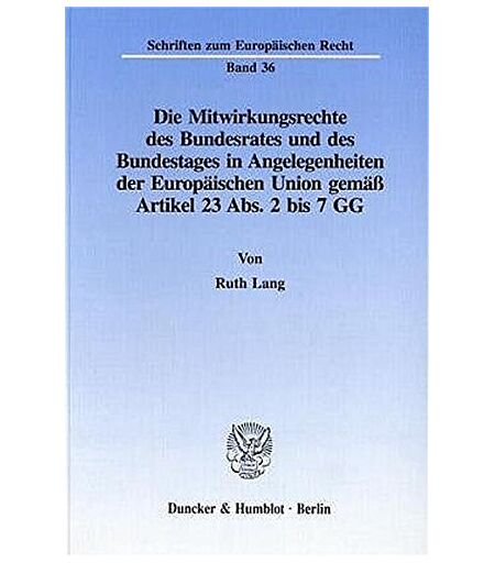 Ruth Lang Die Mitwirkungsrechte Des Bundesrates Und Des Bundestages In Angelegenheiten Der Europäischen Union Gemäß Artikel 23 Abs. 2 Bis 7 Gg.: Dissertationsschrift (Schriften Zum Europäischen Recht)