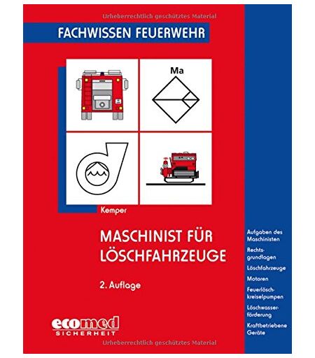 Hans Kemper Maschinist Für Löschfahrzeuge: Aufgaben Des Maschinisten - Rechtsgrundlagen - Löschfahrzeuge - Motoren - Feuerlöschkreiselpumpen - Löschwasserförderung - Kraftbetriebene Geräte (Fachwissen Feuerwehr)