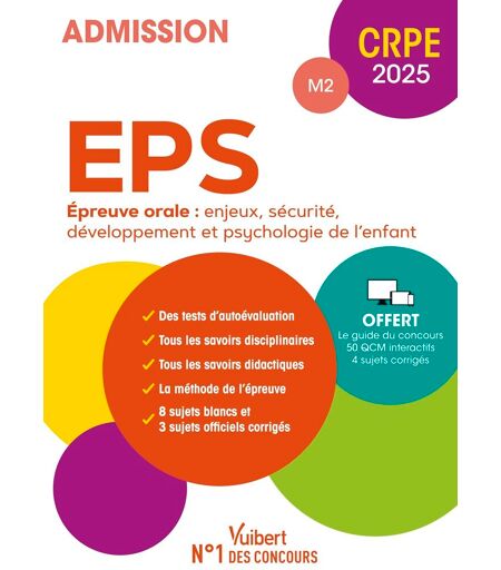 Binding : paperback, Edition : 5, Label : CRPE 2025 - EPS - Epreuve orale d'entretien (M2) : Manuel (9 sujets blancs et 4 sujets officiels) + 50 QCM interactifs, Format : big_book, medium : paperback, numberOfPages : 288, publicationDate : 2024-07-17, languages : french, ISBN : 2311218778 ...