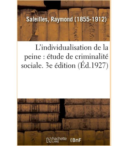 Brand : Hachette Livre - BNF, Binding : paperback, Label : L'individualisation de la peine, étude de criminalité sociale. 3e édition, medium : paperback, publicationDate : 2018-07-01, releaseDate : 2018-07-01, languages : french, ISBN : 2329044011 ...