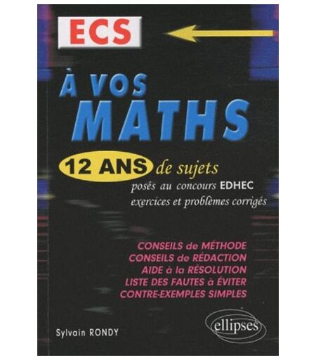 Sylvain Rondy A Vos Maths, Ecs : 12 Ans De Sujets Posés Aux Concours Edhec De 1998 À 2009 : Exercices Et Problèmes Corrigés