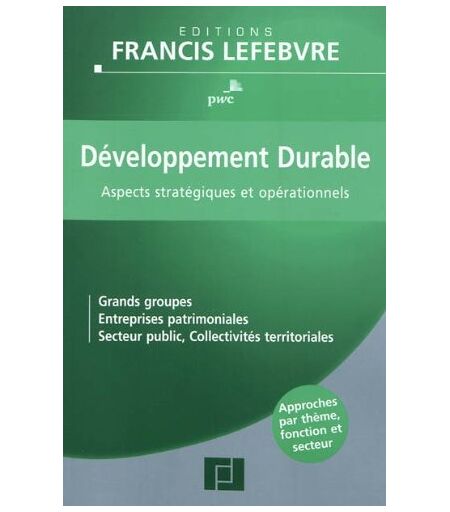 PWC Développement Durable : Aspects Stratégiques Et Opérationnels : Grands Groupes, Entreprises Patrimoniales, Secteur Public, Collectivités Territoriales
