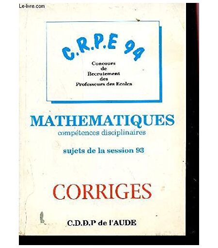 LAVILLUNIERE M. / PAPADOPOULOS C.R.P.E 94 / Mathematiques (Competences Disciplinaires) - Sujets De La Session 93 - Corriges.