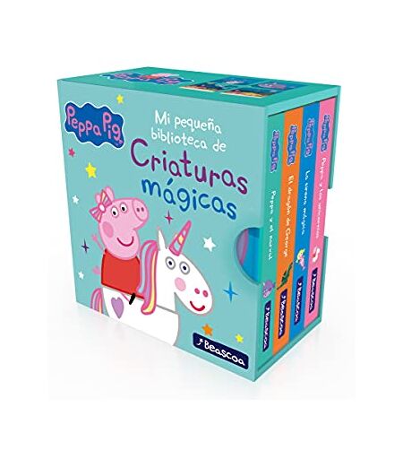 Hasbro Peppa Pig. Libro Juguete - Mi Pequeña Biblioteca De Criaturas Mágicas. Sirenas, Unicornios, Narvales Y Dragones: Peppa Y Los Unicornios - La Sirena Mágica - El Dragón De George - Peppa Y El Narval