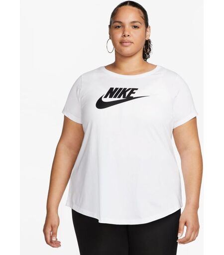 Nike Sportswear Essentials Women's Logo T-Shirt (Plus Size). We updated our Club Essentials T-shirts to give them an easy fit. A roomier, shorter body and a slightly curved hem give this always-comfortable top its refreshed look. Every day, cotton fabric feels soft and lightweight. The classic fit T-Shirt silhouette is relaxed through the body and hips. 100% de coton. ...