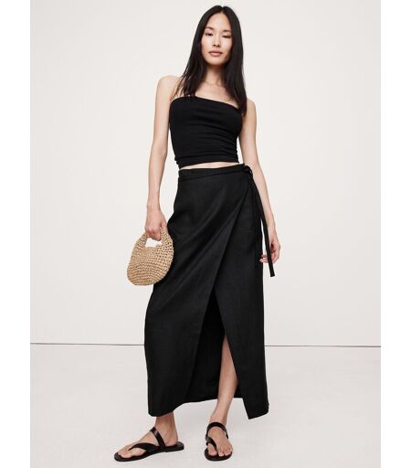 We cut this wrap maxi skirt in 100% certified-European linen so its perfect for everyday but still feels dressed up. Pro tip: looks great poolside. Fitted: High rise. Slim. Sits close to the body with a straight silhouette. Wrap front with tie closure and hidden button at wearers left. Unlined. Fitted: High rise. Slim. Sits close to the body with a straight silhouette. Maxi length. Model: Size 2 510 100% Lin. ...