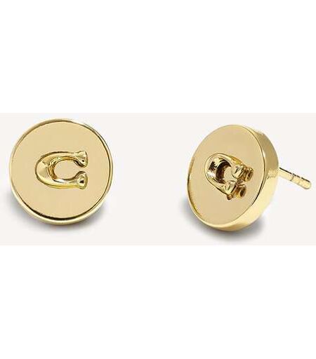 Easy coin stud earrings adorned with signature sculped C motif perfect for everyday. Earrings have a post back closure. Made from brass and titanium post. Includes COACH pouch. 100% Brass. ...