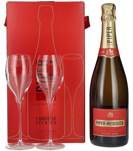 Piper-Heidsieck Champagne CUVÉE BRUT 12% Vol. 0,75l en boîte cadeau avec 2 Verres