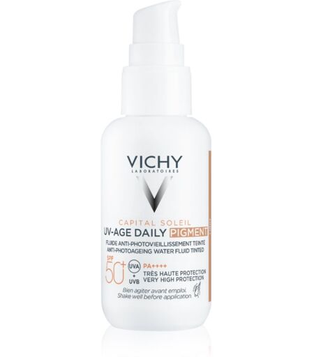 Vichy Capital Soleil Daily SPF50+, 40 ml, Protection contre le rayonnement solaire pour femme, Vous recherchez un produit qui, à la fois, rend instantanément la peau belle et lui apporte un maximum de soins, le tout en une seule étape ? Le produit tonifiant Vichy Capital Soleil Daily SPF50+ est exactement ce dont vous avez besoin car il combine parfaitement les avantages des produits de beauté et des soins. Il apporte une bonne dose d'hydratation à la peau, couvre les éventuelles imperfections et unifie le teint. Le produit : protège la peau contre les rayons UVA et UVB protège la peau contre le vieillissement prématuré empêche la pigmentation inégale de la peau unifie la teinte du visage recouvre légèrement les boutons et autres imperfections du visage laisse une apparence naturelle hydrate et nourrit Mode d’emploi : Agitez bien avant utilisation. Appliquez les solaires en quantités suffisantes. ...