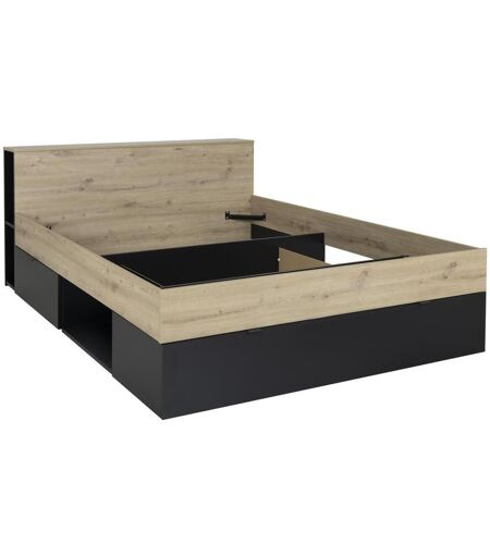 Lit 140 x 190 cm avec rangements - Structure : Panneaux de particules - Coloris : Naturel et noir - Dimensions : L217 x P145 x H77 cm - Style : Classique intemporel - Des rangements à tout va avec le lit CIKETO ! ...