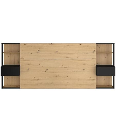 Tête de lit MISTA avec chevets et rangements - 160 cm. Structure : Panneaux de particules. Coloris : Chêne et noir. Dimensions : L255 x P36 x H103 cm. Chevet ou tête de lit? Plus besoin de choisir avec la tête de lit MISTA ! ...