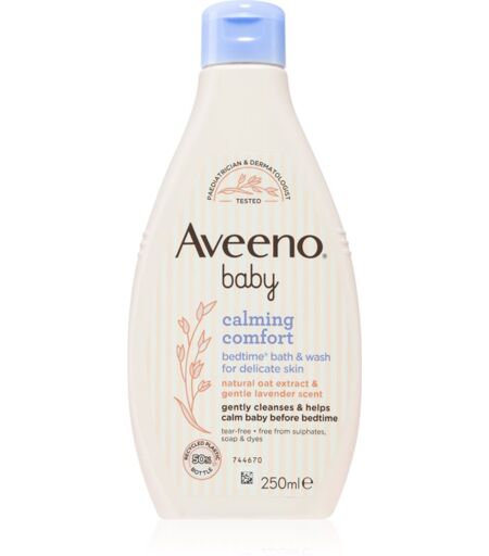 Aveeno Baby Calming Comfort, 250 ml, Gels douche pour enfants pour enfant, Le produit Aveeno Baby Calming Comfort est conçu pour laver délicatement la peau douce de l’enfant. Le produit : nourrit et prend soin de la peau laisse une peau douce et hydratée n’altère pas la fonction protectrice naturelle de la peau Mode d’emploi : Appliquez sur la peau humide et massez délicatement. Rincez ensuite abondamment. ...