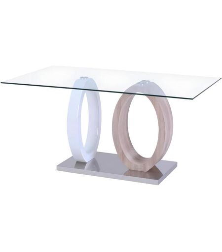 Vente-unique Table à manger AYANE - 6 personnes - Verre trempé et MDF - Chêne & Blanc