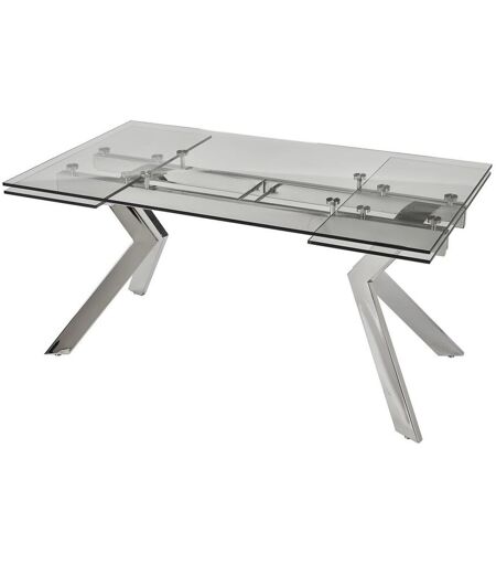 Table à manger extensible 6 à 8 personnes - Matières : Verre trempé et métal - Coloris : Transparent - Style : Design - Dimensions : L160/240 x P90 x H76 cm - Révolutionnez votre espace de vie avec la table VELIKA ! ...