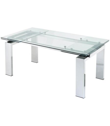 Table à manger extensible 8 à 10 personnes LUBANA - Matières : Verre trempé et métal - Coloris : Transparent et Argenté - Style : Design - Dimensions : L180/270 x P100 x H75 cm - Recevez en grand, avec la table extensible LUBANA ! ...