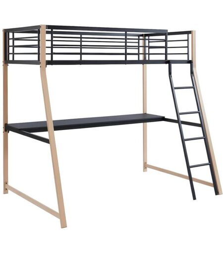 Lit mezzanine MALICIA - couchage 90 x 190 cm - bureau intégré - Sommier à lattes inclus. Coloris : Noir et Chêne. Dimensions : L200 x P138 x H182 cm. Le lit mezzanine MALICIA ou comment faire rimer praticité et modernité ! ...