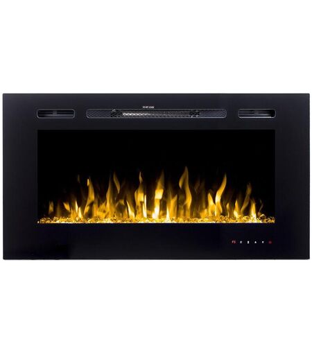 Cheminée électrique CALBUCO - Murale ou encastrable- Puissance : 1400 - 1600 W - Noir - Style : Contemporain - 2 allures de chauffe - 3 ambiances LEDS - 5 réglages d'intensité de flammes. Dimensions : L101,6 x P14 x H54,4cm. Protection anti-surchauffe. Contrôle par télécommande ...