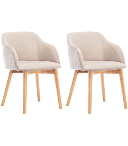 Vente-unique Lot de 2 chaises avec accoudoirs en tissu et bois d'hévéa - Beige - JELISA