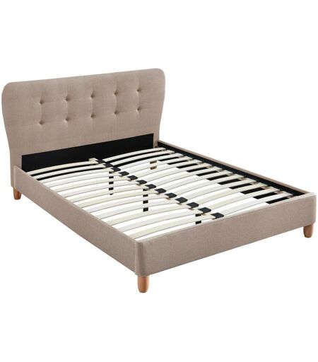 Vente-unique Lit 140 x 190 cm avec tête de lit capitonnée - Tissu - Beige - ELIDE