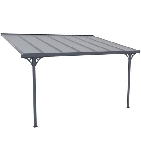 Pergola adossée en aluminum anthracite - surface 13,2 m² - dim L436 x P305 x H240/285 cm. toit en polycarbonate. Protège des UV et apporte de l'ombre ALVARO ...