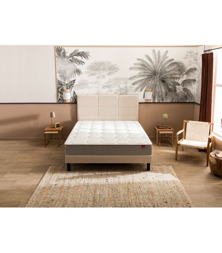 Découvrez la nouvelle collection Escale Hôtelière d'Epeda avec le matelas Destination. Ce matelas vous offre un accueil équilibré et un soutien ferme. Ses ressorts ensachés garantissent une indépendance de couchage.Sa mousse à mémoire de forme absorbe les mouvements et procure un effet cocoonning. Fabriqué en France. Confort d'accueil : équilibré Fermeté : ferme Type de matelas : ressorts ensachés Le + : indépendance de couchage et sensation apaisante pour un sommeil cocooning (mémoire de forme sur la face hiver)Description Matelas à ressorts ensachés et mémoire de forme sur la face hiver 580 ressorts ensachés en 140 x 190 cm Face hiver : mousse à mémoire de forme 1 cm (42,5 kg/m3) + mousse "Soft" (18 kg/m3) + 150 gr/m2 fibres de polyester Face été : mousse "Soft" (18 kg/m3) + 150 gr/m2 fibres de polyester Coutil faces hiver/été 100% polyester Tissu bande gris souris : 100% polyester Qualité Garantie 5 ans Garantie étendue à 7 ans pour l’achat consécutif d’un sommier de la même marque dans un délai de 3 mois maxDimensions Hauteur : 23 cmLivraison chez vous sur rendez-vous. Attention ! Veuillez vérifier que les ouvertures (portes, escaliers, ascenseurs) permettront le passage du colis lors de la livraison. FABRIQUÉ EN FRANCE. FABRICATION À LA DEMANDE. En ne produisant que l’article commandé, les ressources sont préservées. Pas de surproduction, pas de matières premières utilisées inutilement. IMPACT ENVIRONNEMENTAL LIMITÉ. La certification NF Environnement, délivrée par un organisme indépendant, est un outil de reconnaissance de la qualité écologique d’un produit. Elle garantit sa qualité par la conformité à des normes, ainsi que la limitation de ses impacts sur l’environnement tout au long de son cycle de vie : de sa fabrication jusqu’à son élimination. ...