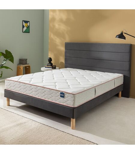 Le matelas Exploits, doté de la technologie BULTEX nano, propose la parfaite combinaison entre la fermeté et le moelleux de son accueil pour un excellent confort. Confort d’accueil : mœlleux Fermeté : très ferme Type de matelas : mousse Le + : bon soutien du corpsBien choisir sa literie ? Consultez notre guide sur le site.Description Âme en Bultex nano 36 kg/m3, épaisseur 16 cm Mono face : mousse de confort en polyéther, 14 kg/m3 + fibres de polyester (dont 80% de fibres de polyester recyclées), 250 g/m2 Coutil 100% polyester, traité anti-acariens et antibactérien Traitement biocide Garnissage plate-bande : mousse polyéther, épaisseur 0,7 cm 4 poignées verticalesChaque matelas a son sommier assorti. Le couple parfait pour un confort maximum. Retrouvez-le sur le site.Qualité Garantie 5 ansDimensions Hauteur : 22 cm FABRIQUÉ EN FRANCE. FABRICATION À LA DEMANDE. En ne produisant que l’article commandé, les ressources sont préservées. Pas de surproduction, pas de matières premières utilisées inutilement. POLYESTER RECYCLÉ. Utiliser du polyester recyclé, c'est préserver certaines ressources et réduire les déchets. ...