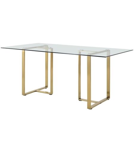 Table à manger 6 couverts NILESA II - Matières : Verre trempé et acier inoxydable - Coloris : Transparent et doré - Style : Design et art déco - Dimensions : L180 x P90 x H75 cm - Sublimez votre salle à manger en toute élégance avec la table NILESA ! ...