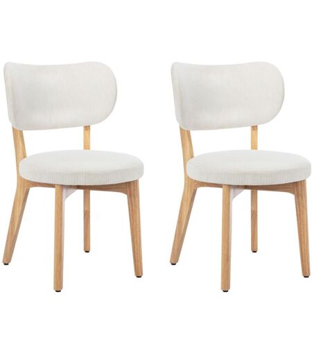 Vente-unique Lot de 2 chaises en velours côtelé et bois d'hévéa - Blanc - TORIEL