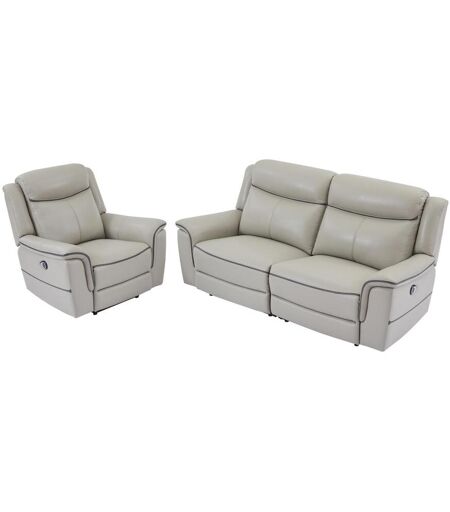 Vente-unique Canapé 3 places et fauteuil relax électrique en cuir gris clair ADELIO