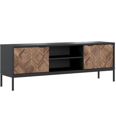 Meuble TV MIALINE - 2 portes et 2 niches - Matières : Panneau de particules - Coloris : Noir et Naturel foncé - Style : Contemporain - Dimensions : L160 x P39,6 x H56 cm - Osez MIALINE et combinez praticité et modernité ! ...