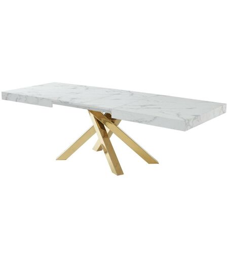 Vente-unique Table à manger extensible 6 à 10 personnes en MDF et métal - Effet marbre blanc et doré - CATONAV