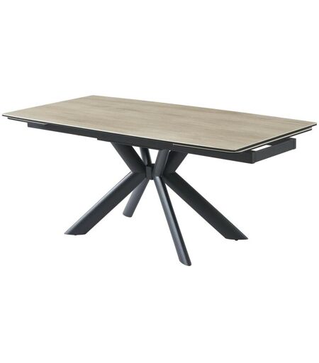 Vente-unique Table à manger extensible 6 à 10 personnes en céramique, verre trempé et métal - Naturel clair et Noir - LIOMINA de Maison Céphy