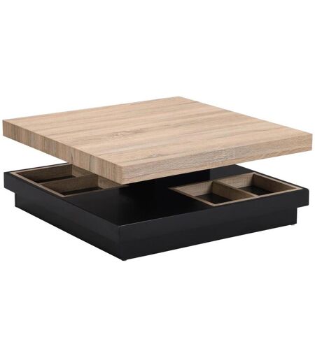 Vente-unique Table basse - Plateau pivotant - MDF laqué noir et naturel - FAUSTO