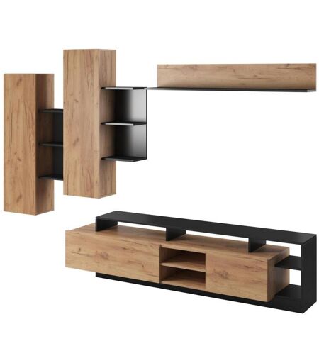 Vente-unique Mur TV avec rangements - Coloris : Naturel et anthracite - IDESIA