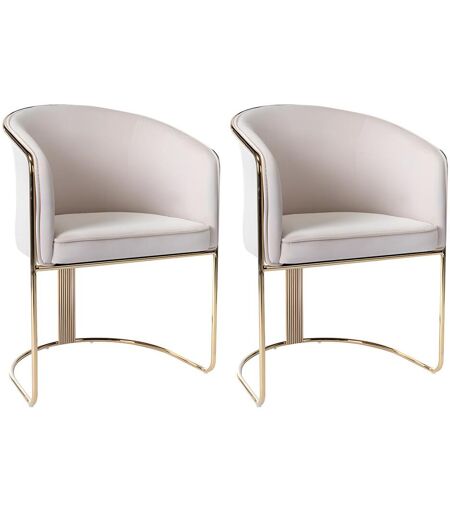 Lot de 2 chaises avec accoudoirs JOSETHE - Matières : Velours et métal - Coloris : Crème et doré - Style : Art Déco - Dimensions : L59,5 x P52,5 x H82,5 cm - Hauteur d'assise : 48 cm - Place au raffinement avec la chaise JOSETHE et sa structure art-déco ...