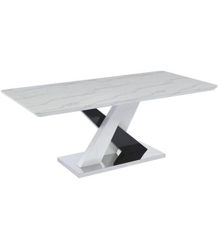 Vente-unique Table à manger 8 personnes en MDF et acier inoxydable - Effet marbre blanc et noir - EVAELA
